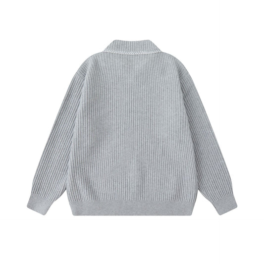 Turn-Down Collar Knit Sweater Unisex Loose Polo Neck Sweater