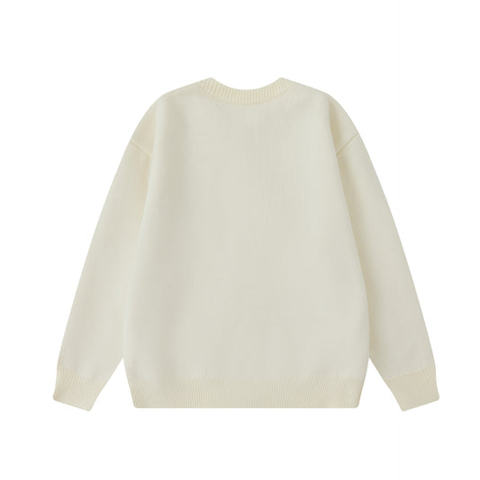 Color-block Jacquard Knitwear Loose Fit Casual Unisex Pullover Sweater