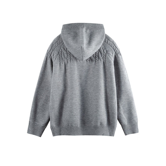 Cable Knit Half-Open Front Long Sleeved Pullover Hooded Sweater